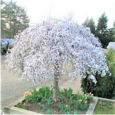 Okrasné třešně jsou krásné stromy původem z Japonska s hrozny bílých kvítků, které pokryjí téměř celý strom. Tato forma je převislá (Pendula) a proto dorůstá do výšky pouze kolem 1,5 – 2 m, záleží na výšce kmínku při zakoupení.