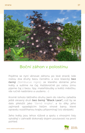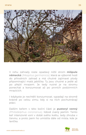 Jedinečný eBook, kde naleznete text a návod k tomu, jak osázet cca 340 m2 zahrady stromy a jedlými keři, okrasnými trvalkami, květinovou loučkou a zajímavým podrostem do stínu i na slunce.