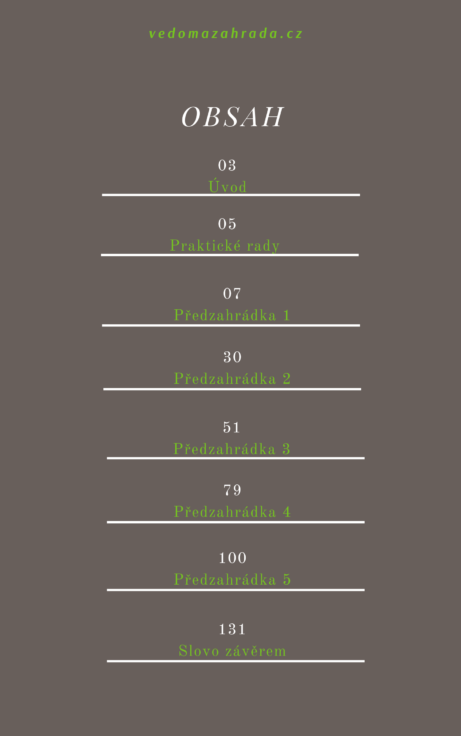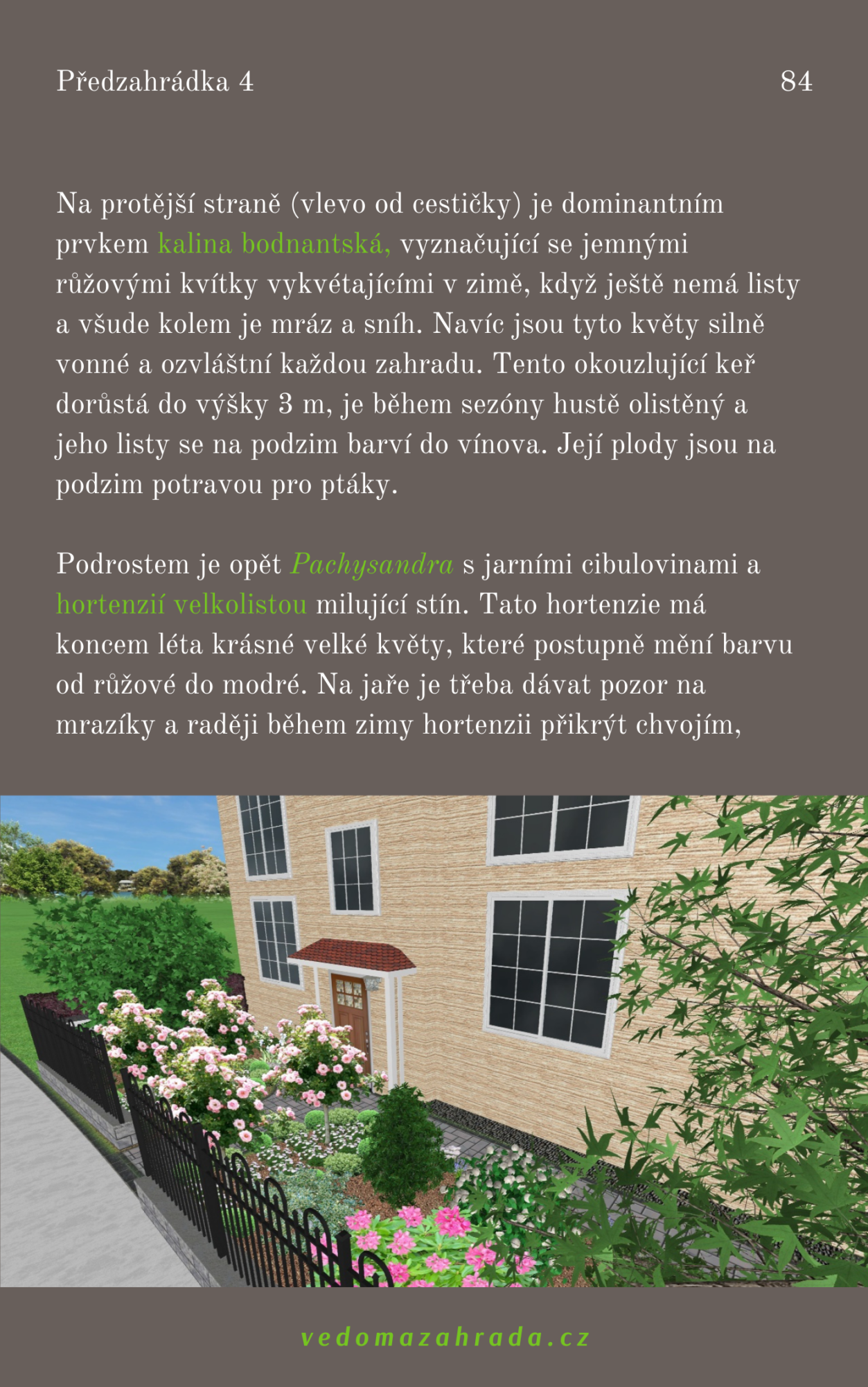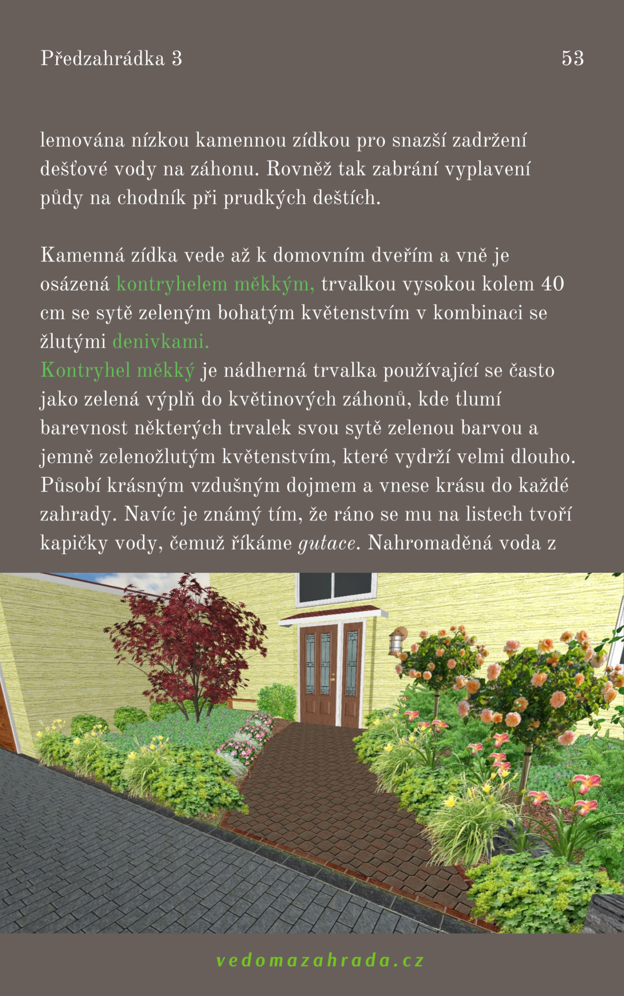 Jedinečný dokument, kde na 135 stranách naleznete různé tipy předzahrádek s popisem a seznamem rostlin.