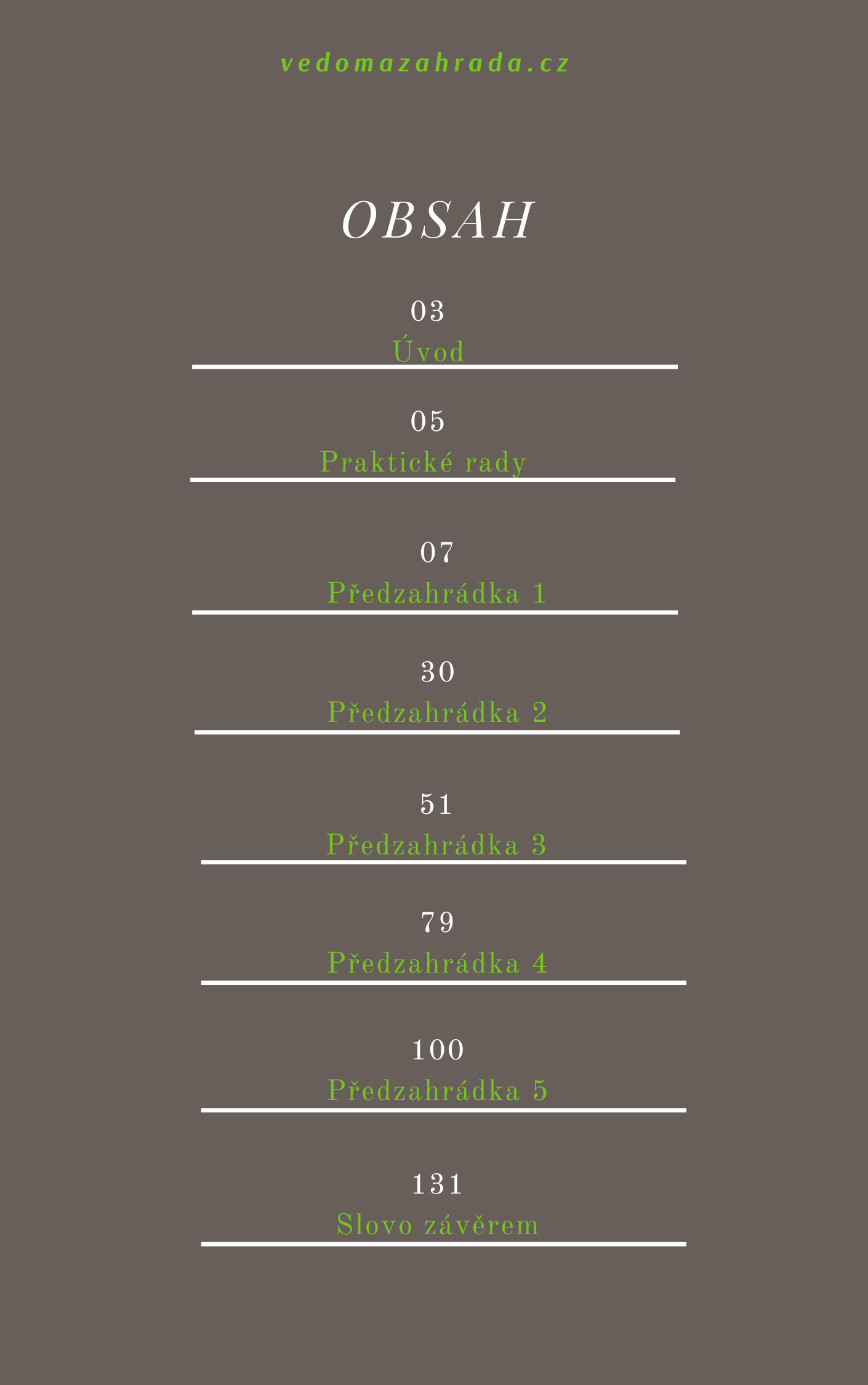 Jedinečný dokument, kde na 135 stranách naleznete různé tipy předzahrádek s popisem a seznamem rostlin.