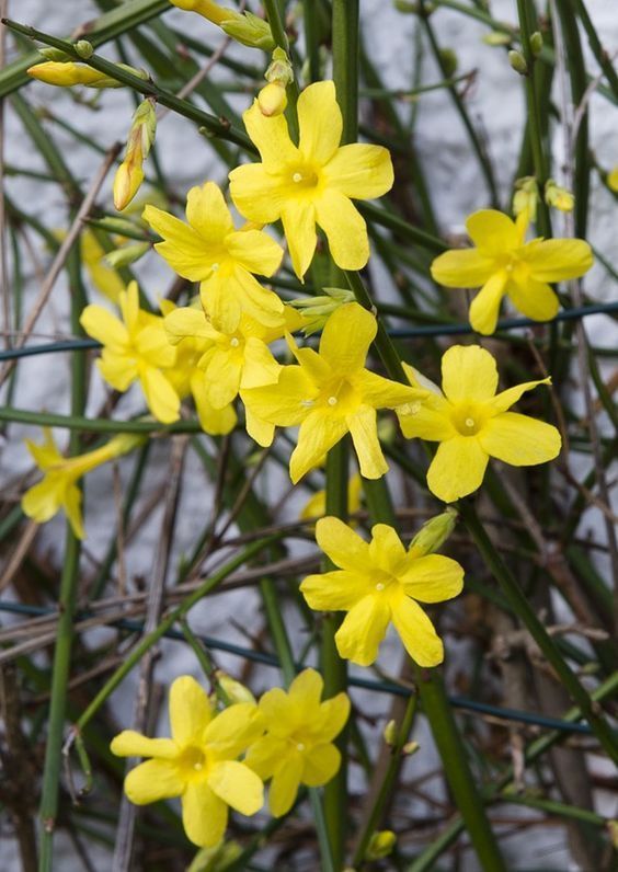 Jedná se o opadavý keř pocházející z Číny a pokud má oporu, může šplhat až do třímetrové výšky. Jeho žluté kvítky se na holých větvičkách objevují koncem ledna a vydrží kvést až do dubna.