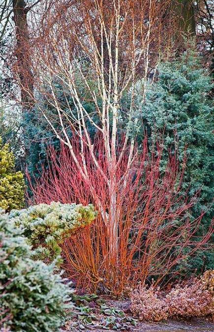 Některé druhy upoutají pohled barvou své kůry (bříza bělokorá, svída výběžkatá, svída krvavá), jiné svým odkvetlým květenstvím (hortenzie, rozchodník) a mnohé stromy mají nádherné zbarvení plodů (jabloň Sargentova, cesmína přeslenitá, krásnoplodka, skalník Dammerův…).