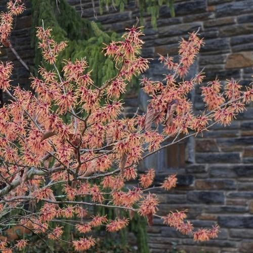 Je opadavý keř kvetoucí v zimě oranžovými nebo žlutými kvítky, které vypadají jako by je právě někdo rozstříhal. Více o něm píšu zde.