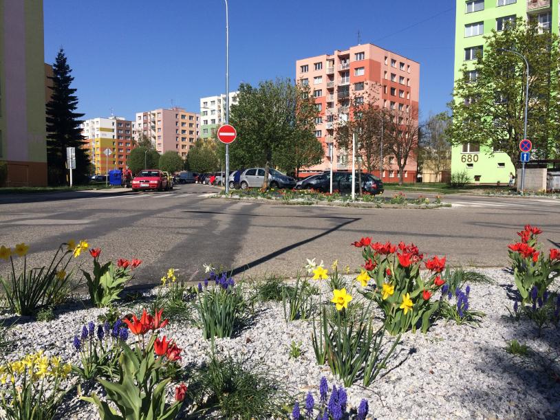 Při průjezdu městem je velmi milé kochat se touto rozkvetlou nádherou, kterou také často pozoruji i na kruhových objezdech. I když je pravda, že kruhové objezdy se štěrkovými záhony jsem viděla hlavně v našich sousedních státech, hlavně Německu a Rakousku.