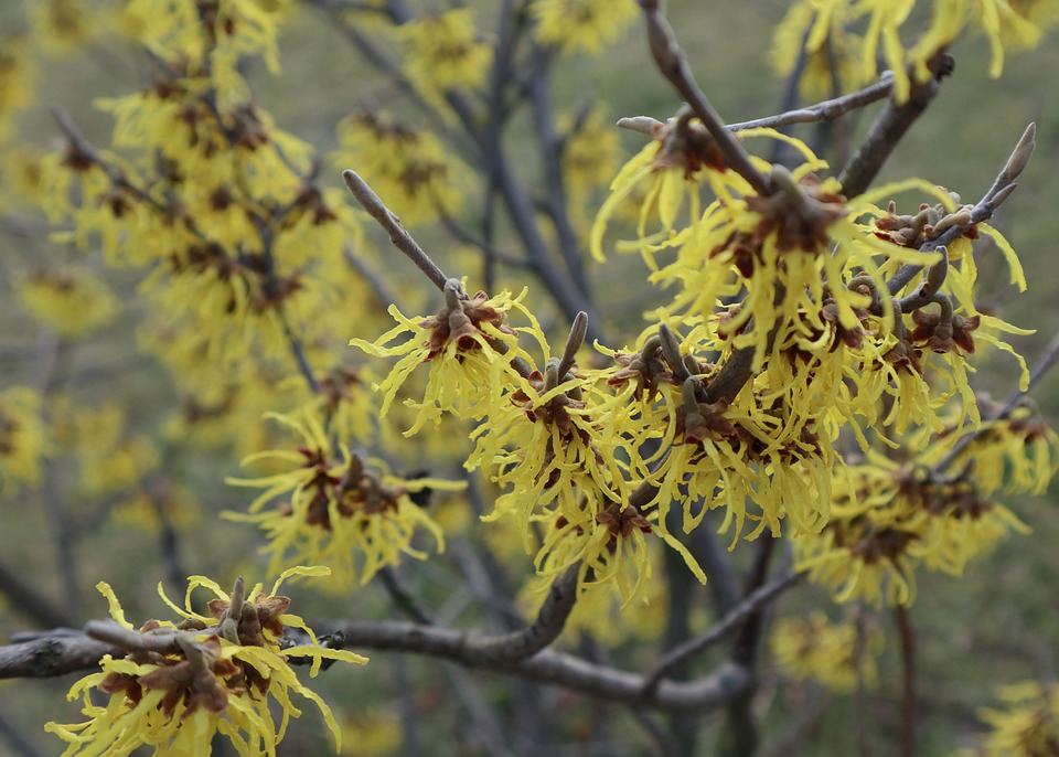 Vilín prostřední (Hamamelis x intermedia) je poměrně odolný keř, který má rád lehce kyselou půdu na slunném, ale přistíněném stanovišti. Je typický svým kvetením od ledna do března, kdy se na holých větévkách objevují žluté případně oranžové květy připomínající rozcuchané chocholky mažoretek.