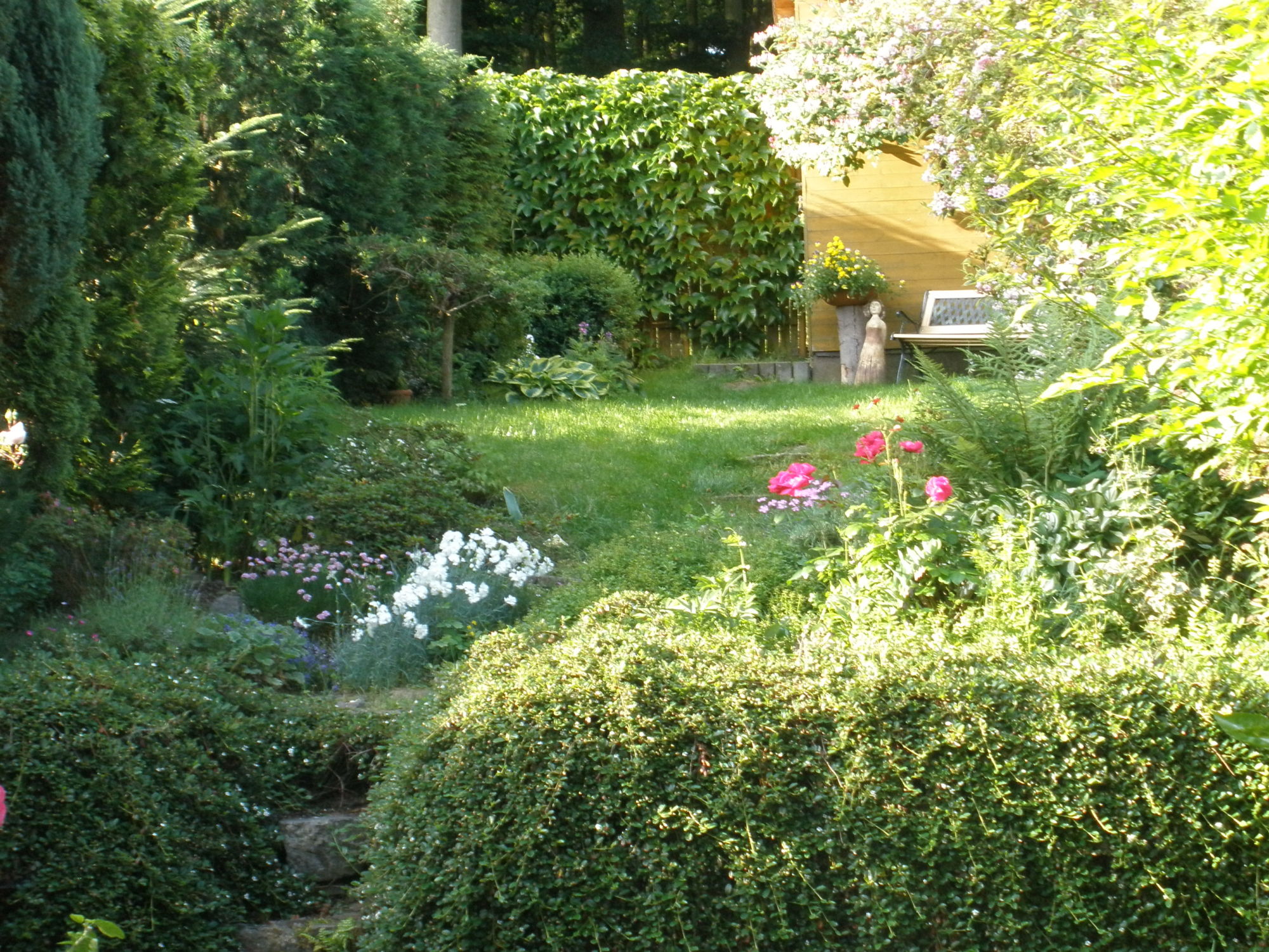 Vhodné je také vytváření jakýchsi poloostrůvků poblíž plotu, tedy zvlněných záhonů, které opět opticky rozšiřují prostor a svým barevným uskupením lahodí oku. Pokud nemusíte, nevytvářejte žádný pevný plot, ale nechte vyrůst plot živý, nejlépe z různých druhů keřů či stromů nižšího růstu. To se nejvíce osvědčilo mně při budování zahrady, kdy jsme zvolili různé druhy keřů tak, aby působily ozdobně v různá roční období, a musím říci, že je to mnohem působivější než pevný plot.