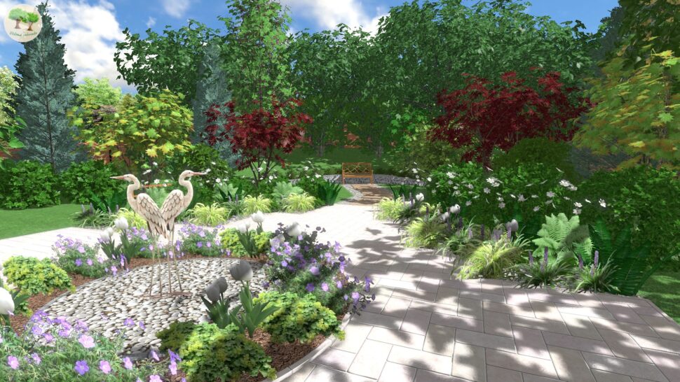 Pocit svobody symbolizují v zahradě dvě volavky. Intuitivně jsem cítila, že je mám do tohoto návrhu dát. Jsou ztělesněním volnosti, svobodného pohybu a rozhodování.