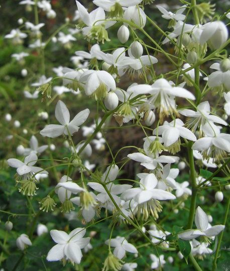 Žluťucha Delavayova (Thalictrum delavayi) může být zakoupena i v této krásné bílé variantě a v kombinaci s jejími fialově kvetoucími příbuznými jsou v záhonu nepřehlédnutelné. Hodí se výborně mezi jehličnaté dřeviny, na oživení ploch stříhaných buxusů a dalších zelených dřevin.